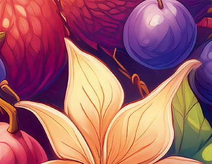 - 신선 과일 및 채소(Fresh produce): 다양한 과일, 채소, 허브류 등