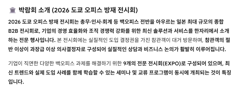 ▪️일하는 방식 혁신 EXPO 생성형 AI 및 AI 에이전트 활용, 업무 효율화 도구 등 디지털 전환(DX) 솔루션을 다룹니다.