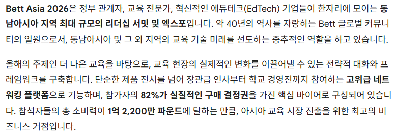 박람회에는 60개 이상의 선도적인 혁신 기업이 참여하여 유치원(K12)부터 고등 교육 및 직업 기술 교육(TVET)까지 전 분야를 아우르는 솔루션을 선보입니다.