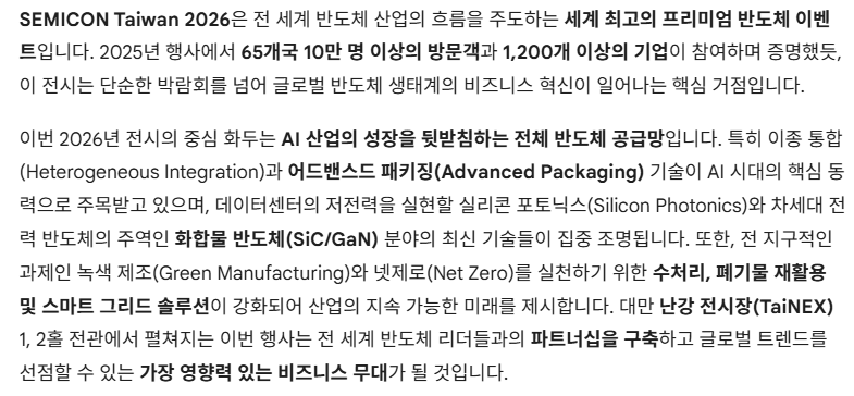 반도체 제조의 전 공정과 최첨단 기술 테마별 파빌리온이 운영됩니다.