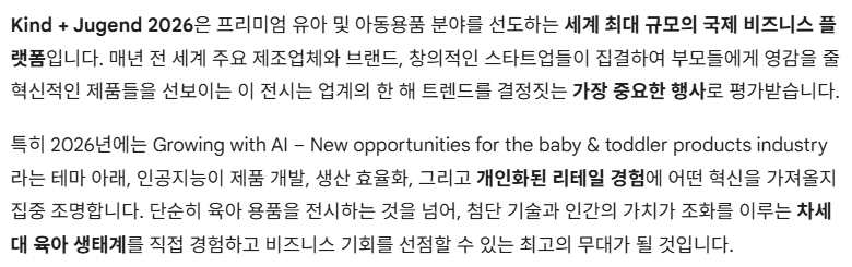 엄마와 아기 케어 (Mom & Kids Care): 수유 용품(젖병, 공포 공해 등), 건강 관리 제품, 유아용 코스메틱, 위생 용품, 식품 및 음료