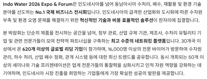 2. 폐수 및 하수 처리 폐수 처리 설비, 하수 펌프장, 혐기성 소화 시스템, 슬러지 탈수 장비, 원심 분리기, 오일 분리기, 산화구, 소각로 및 폐기물 관리 서비스.