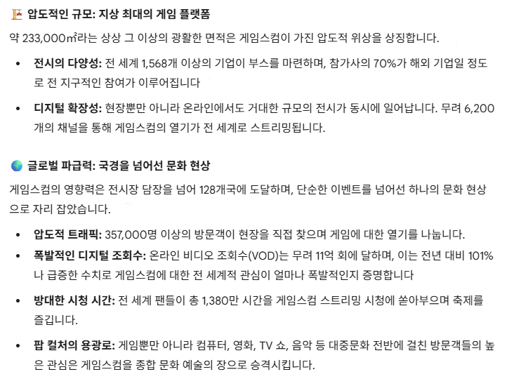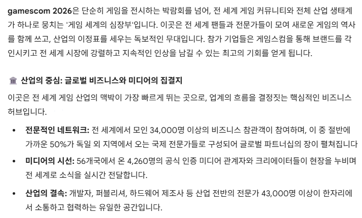 기타 서비스: 전시 관람객 대상 케이터링, 전시장 건축 서비스, 호텔 예약 및 물류 서비스.