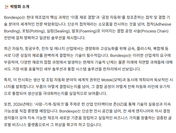 산업 현장에서 즉시 적용 가능한 실무 중심의 기술과 장비들이 전시됩니다.