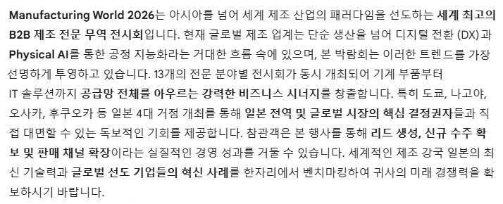 [공장 설비/계측] : 공장 인프라 장비, 에너지 절감 제품, 공장 보안 및 재해 방지 설비, 스마트 유지보수 솔루션, 계측 및 시험 기기, 산업용 카메라 및 센서