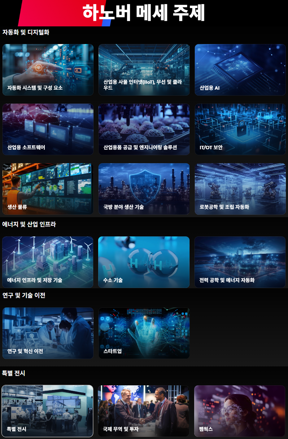 제조 자동화, 모션 및 드라이브 기술 (로보틱스, 통합 시스템, 유압/공압, 센서 시스템, 산업용 IT, 모바일 로봇 등) |