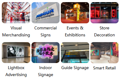 간판제작 기술 및 장비, 디지털 프린팅, 사인 소재·패널, 사인·라이트박스, 리테일·POP디스플레이, 전시디스플레이 장비, LED조명, LED·디지털사이니지 등