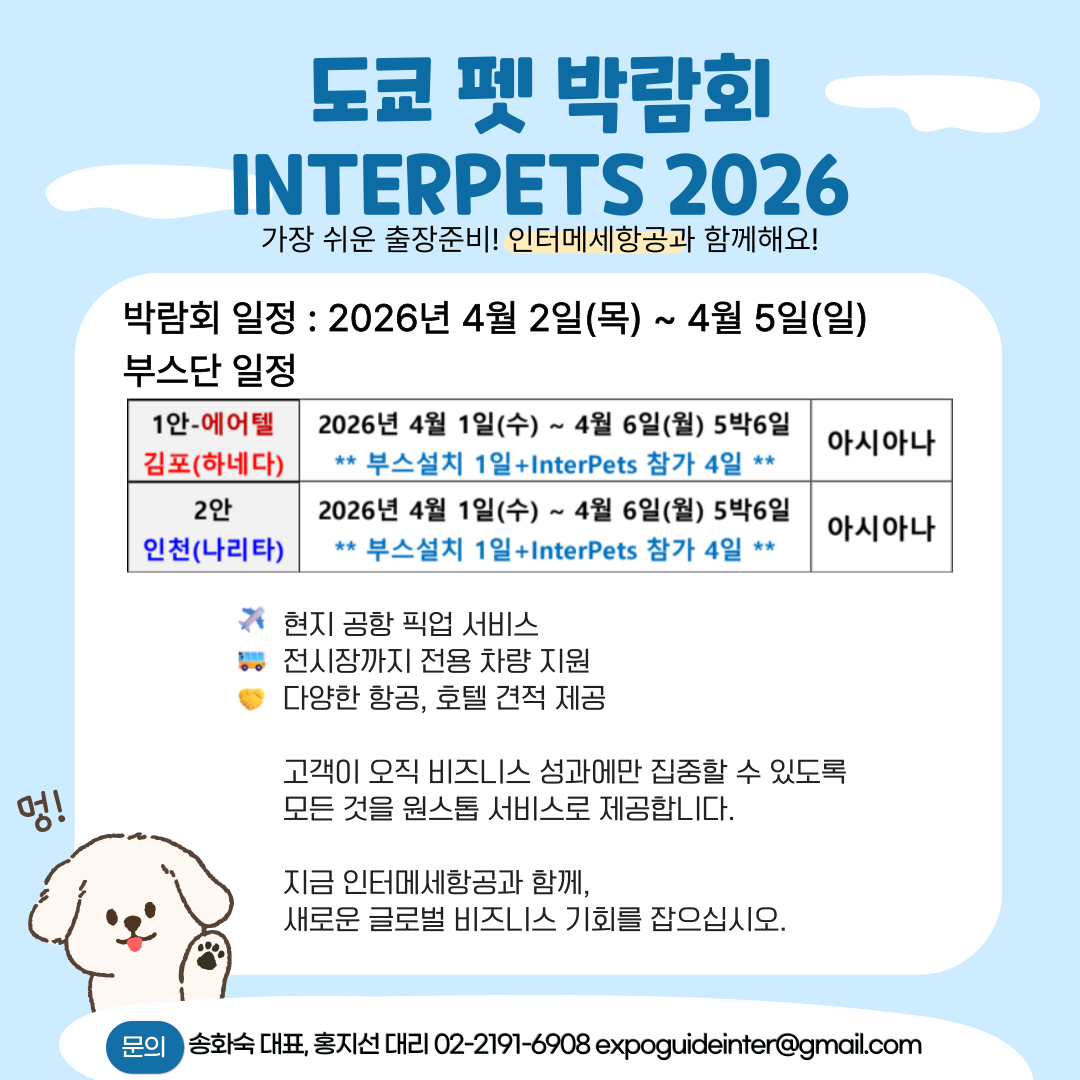 <담당자안내> 1팀: 송화숙 대표, 홍지선 대리 ☎ 02-2191-6908 / ✉ expoguideinter@gmail.com