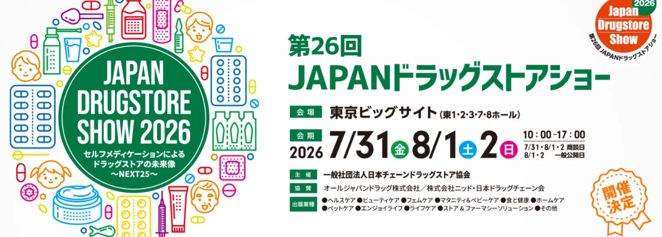 Japan Drugstore Show 는 일본 도쿄에서 개최되는 드럭스토어·헬스&뷰티(H&B) 산업 전문 박람회로, 의약외품·건강기능식품·화장품·생활용품 등 드럭스토어 유통 채널 중심의 상품과 서비스를 한자리에서 소개하는 행사입니다. 일본 드럭스토어 시장의 급성장과 고령화·웰니스 수요 확대를 배경으로, 제조사·브랜드·유통사·리테일러를 연결하는 실무형 비즈니스 플랫폼으로 기획되었습니다.