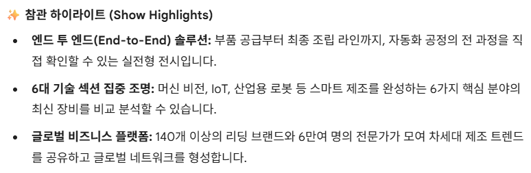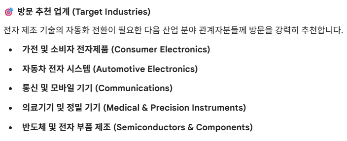 전자 제품 생산 효율을 극대화하는 스마트 솔루션들이 집중 전시됩니다.
