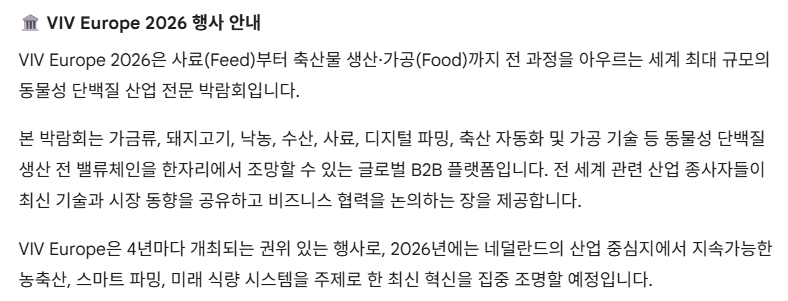 VIV Europe 2026은 동물성 단백질 산업 전반을 포괄하는 다음과 같은 품목 및 기술을 전시합니다.