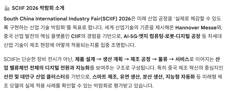 SCIIF는 중국 지능형 제조 산업을 대표하는 핵심 기술과 장비를 중심으로 구성됩니다.