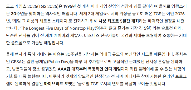 공식 프로그램 (Online): 기조 강연, 신작 발표회, e-스포츠 대회 생중계