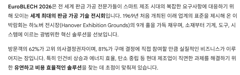 소재 및 제품: 판금, 튜브, 섹션(철 및 비철), 완제품, 구성 요소 및 어셈블리